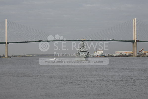 HMS Ark Royal approaching QEII Bridge