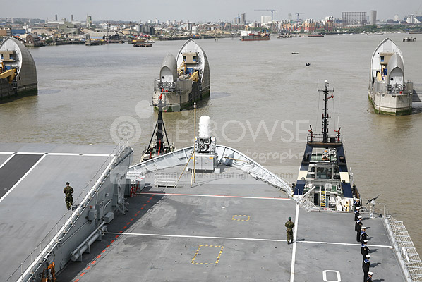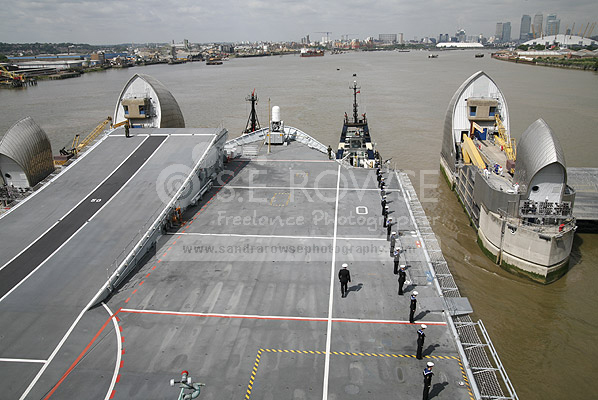 HMS Ark Royal passing through The Thames Barrier