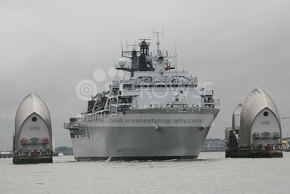 HMS Bulwark Passes Through Thames Barrier London